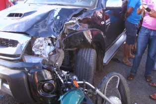 Um grave acidente aconteceu no final da tarde de quinta feira (21), na BA 052, em Frente ao Hospital Municipal de Ipirá. Segundo informações de pessoas que estavam no local do acidente, uma Hilux preta de placa NTW 0167 licenciada em Salvador de propriedade de um médico que atende no Hospital Municipal de Ipirá saia do Hospital quando uma moto titan de cor verde placa ILC 8116 licenciada em Serra preta trafegava em alta velocidade na rodovia, pulou o quebra mola e não conseguiu parar, colidindo com a caminhonete.